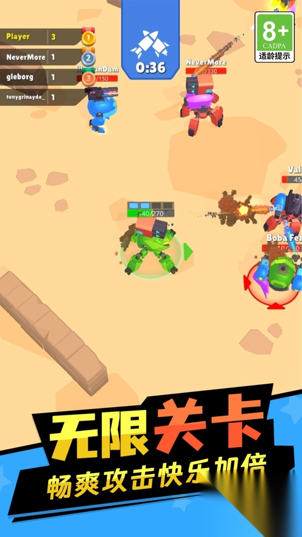 《钢铁城市英雄》最新版本,是一款超有趣的机甲动作类游戏。在这里,你能够依据蓝图,自由打造专属机甲。通过巧妙调整重量配比,精心设置武器模块位置,来全方位优化机甲的战斗性能。一旦组装完毕,便可立刻奔赴未来都市、废土荒漠等多样化的战场,与其他玩家操控的机甲展开紧张刺激的实时对战,向着“机甲之王”的荣耀称号全力进发。