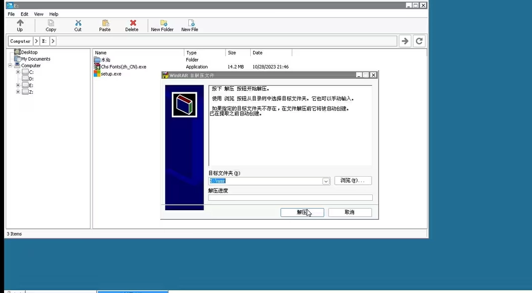 13、接着我们进入前面设置好的目录(此处为E盘)