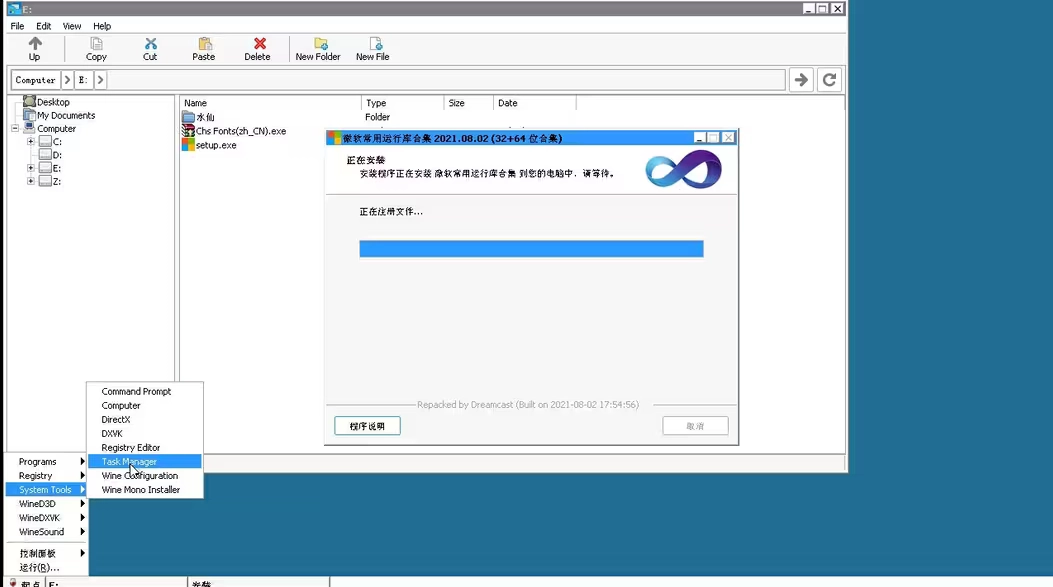 2、软件的工作原理主要靠主要容器【wine,→万,→葡萄酒】,来跑部分WINDOWS程序。