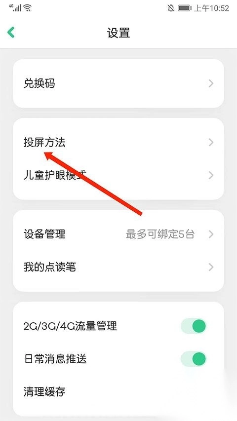3、进入设置界面,选“投屏方法”选项,