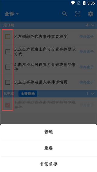 1、向右滑动或点击左侧方框可完成事件