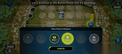 在主要阶段一时若宣言进入玩家则进入战斗阶段,若不宣言,则战斗阶段跳过,直接进入结束阶段。宣言进入战斗阶段为一时点,部分要求“战斗阶段开始时发动”卡片效果可在此时点发动。部分卡片效果“结束战斗阶段”或者“战斗阶段跳过”效果也会直接进入结束阶段。