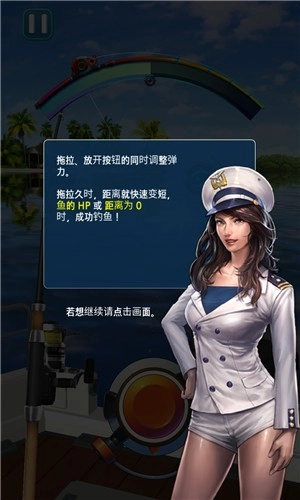 4、在拖拉并放开按钮的同时调节弹力,拖拉的时间越久,距离就会缩短。当鱼的HP值降为0时,就能成功钓到鱼。