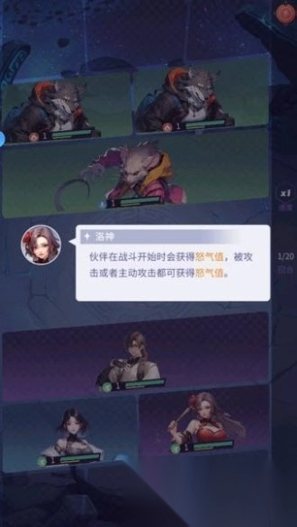 3.跟随剧情指引,开始第一次战斗,伙伴在战斗开始时会获得怒气值,被攻击或者主动攻击都可以获得怒气值,怒气槽满后可以释放怒气技。