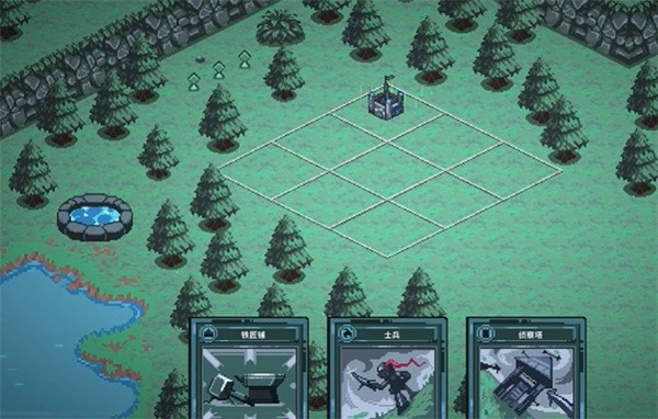2、游戏的下面有多个卡牌,作用都不同,比如可以建造铁匠铺、侦查塔等。