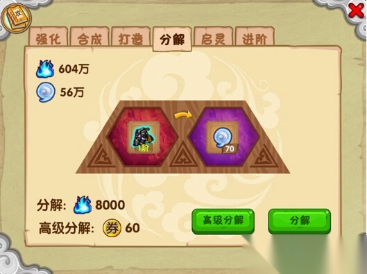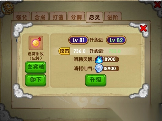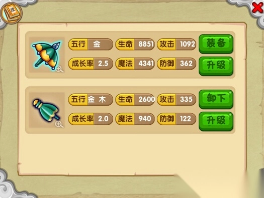 4、游戏之中还有法宝道具,玩家可以升级法宝来获得巨大的属性提升,只不过游戏后期法宝升级需要些龙女眼泪,这个材料比较难获得。