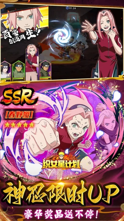 《织女星计划》官方版本,这可是一款超热血的横版卡牌手游!在这里,你能够收集鸣人、佐助、晓组织等多达上百名忍者,精心组建属于自己的专属小队,尽情体验策略布阵的烧脑乐趣,以及炫酷横版奥义对决带来的震撼!游戏运用动画级别的技能特效,完美重现原作那些高燃的精彩场面!而且福利超丰厚,仅需 0.1 折超值优惠,登录游戏就直接送千抽,让你轻轻松松就能获得 SSR 晓组织成员,就此开启独属于你的忍界传奇之旅!要是现在加入,还可以参与神忍限时概率提升活动,有机会赢取稀有奖励哦!