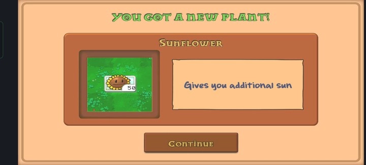 4、当你收获到向日葵时,就代表着通关成功,点击【continue】。