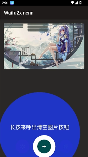 3、导入图片后会触发教程,长按加号按钮可以呼出清空图片按钮