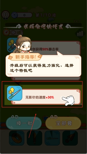 3、回合开始时,背包里的武器自动攻击来犯的小怪兽,消灭一定数量的怪兽后,玩家等级提升,可从海量升级选项中选择一个。