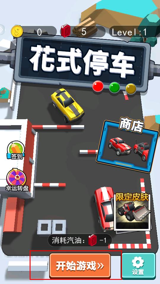 1要开启游戏,必要步骤是点击“开始游戏”按钮,消耗汽油开启停车挑战,投身充满趣味的关卡。