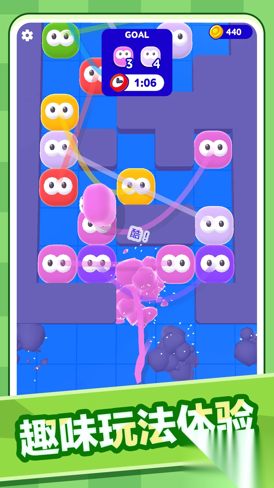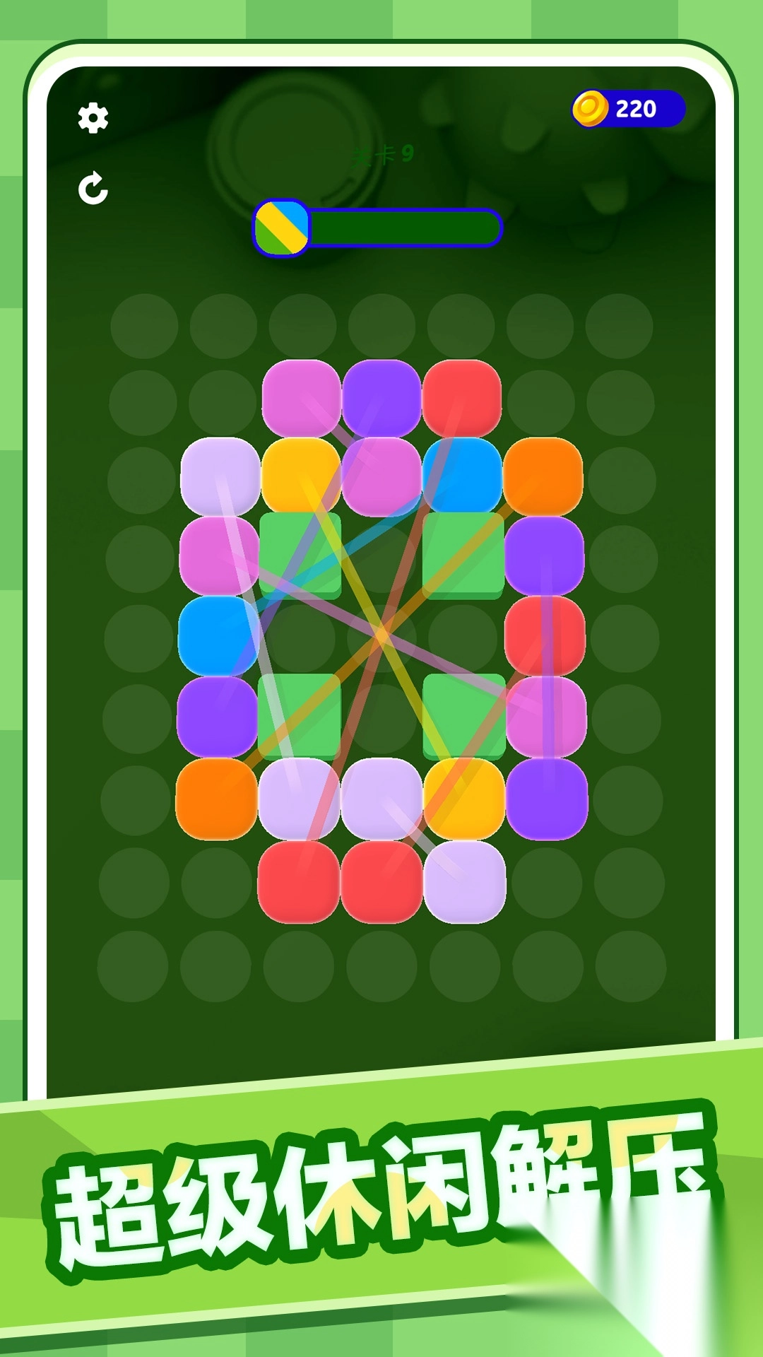 3、游戏关卡从简至繁,每一关方块数量递增,线结机制也逐步升级,持续考验玩家的解谜能力。