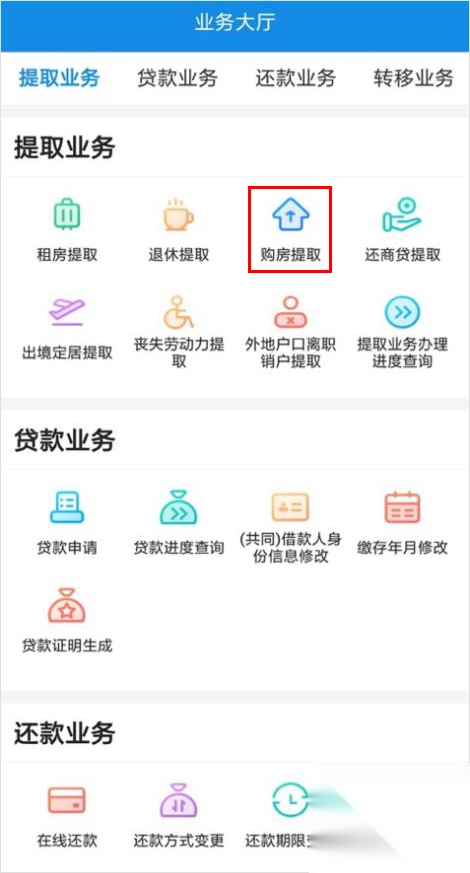 1. 开启“南京公积金”app,点击【业务大厅】>【购房提取】,随后进入自助办理业务声明页面(此交易需完成实名认证方可操作)。