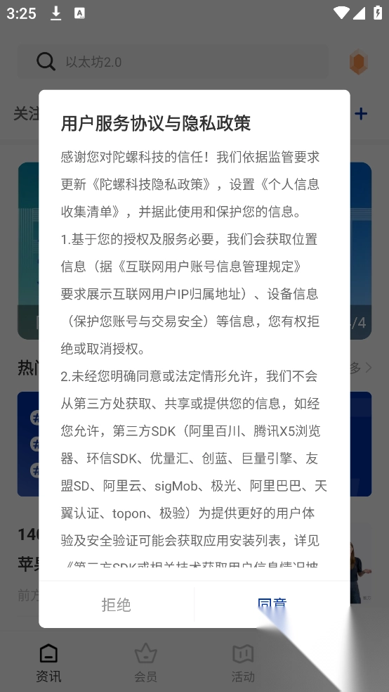 1、可以直接下载最新版本的软件,进入的时候需要先同意隐私权限。