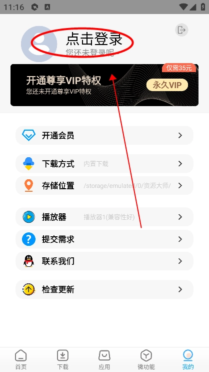 首页,点击右下角“我的”;