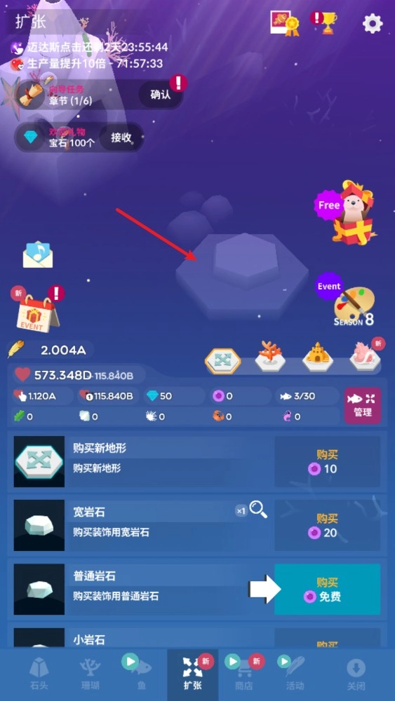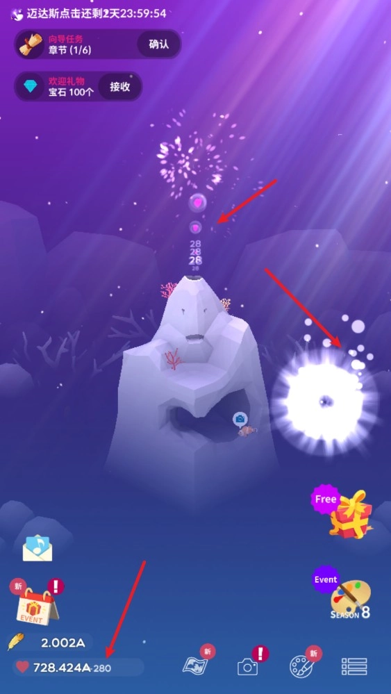 3、此外,还有副本挑战,完成副本挑战后可获取钻石奖励,助力你更出色地打造水族馆。