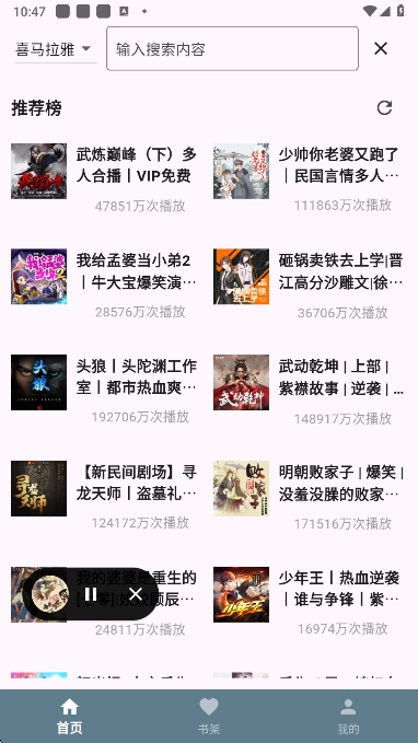4、书架管理 :将喜欢的书籍加入书架,自动记录播放进度,方便下次继续收听。