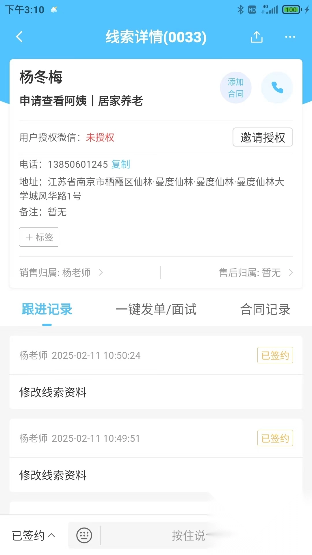 2、客户通过线上平台、电话等渠道下单后,订单信息会即时同步至软件内,能够依据订单详情迅速匹配阿姨与客户进行对接。