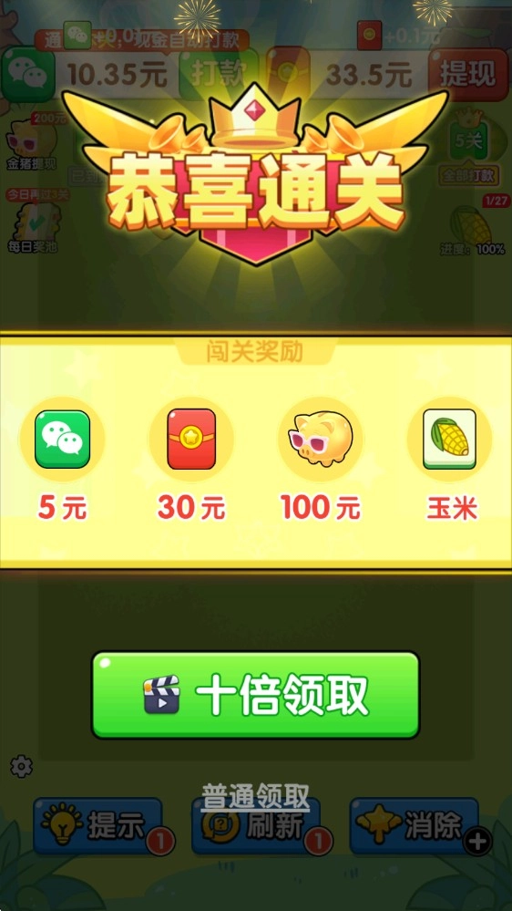 3、设有红包奖励机制,玩家完成特定数量的关卡即可获取奖励,以此激励玩家积极游玩。