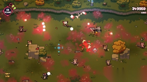 1.运用经典的俯瞰式射击玩法,以上帝视角操控蝾螈实现移动与射击。