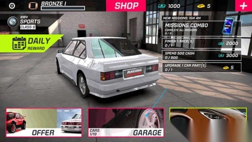 3.每日与每周任务,按时完成任务可以获得钞票与金条奖励,可用来购买与提升赛车性能。