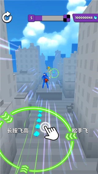 2、如下图所示,长按和松手即可控制角色进行飞奔动作