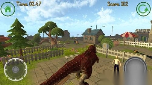 1.具备流畅的操作体验,能够通过点击屏幕左右两边的按钮,对霸王龙的移动方向与攻击进行操控。