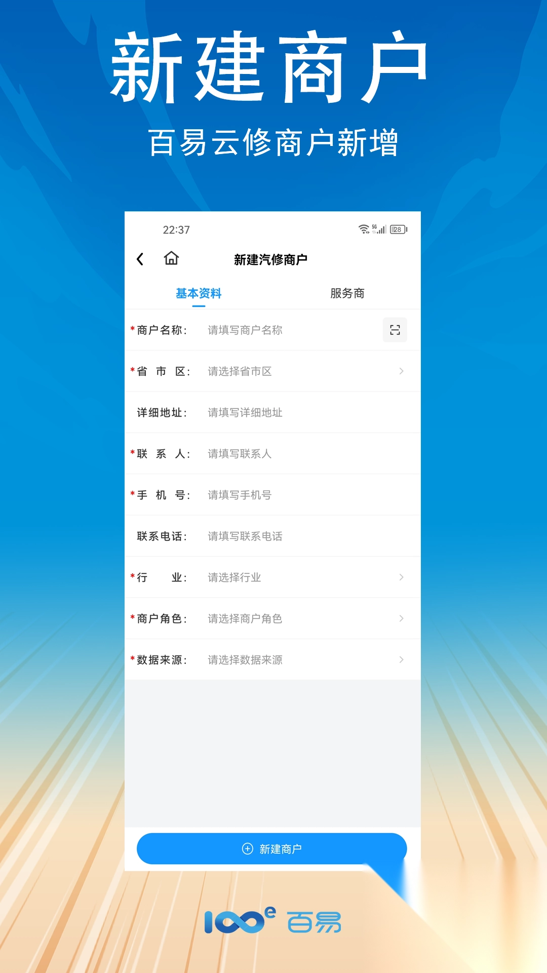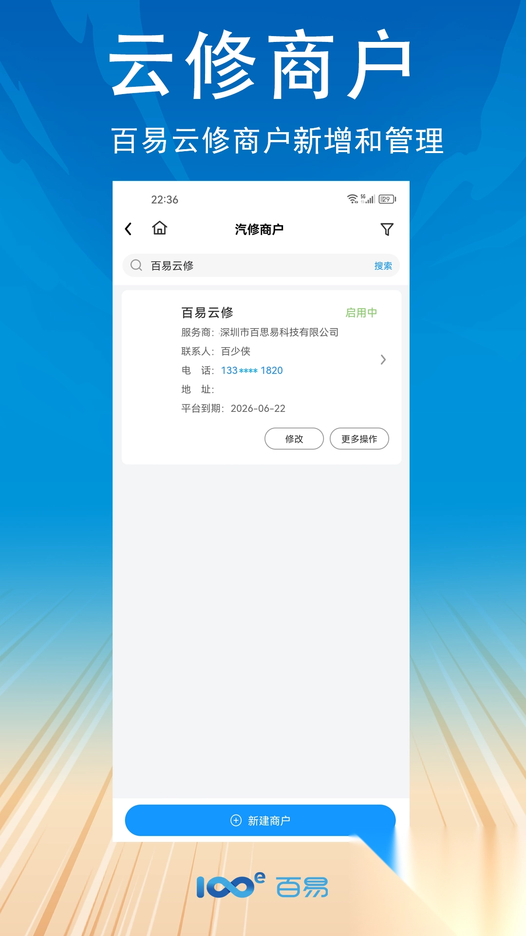 1、支持在线新建汽修商户入驻,便于统一管理,使日常管理更加简单高效。