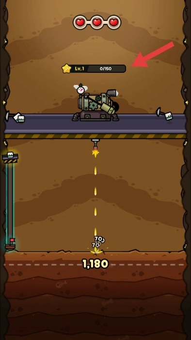 1. 进入游戏后,首先要熟悉界面。注意上方显示的【Lv.1 - 0/150】等级进度以及红心状态,下方的数字代表当前分数,随后准备开启挖掘挑战。