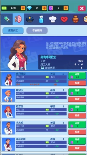 3、可逐步解锁更多医生,提高医资水平,增强治愈能力。