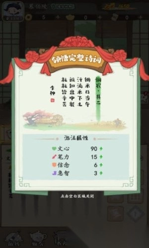 5)每次领悟到的诗词都能提高我们的属性。
