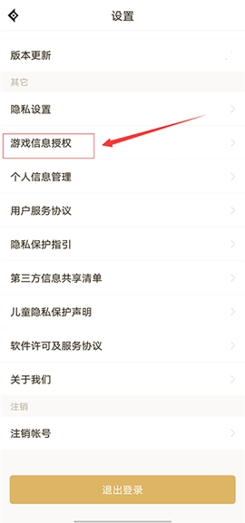 2、在设置界面中下拉找到并点击游戏信息授权选项。