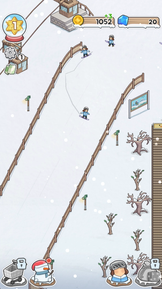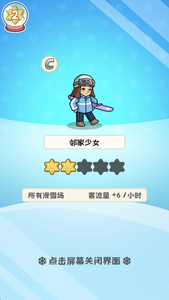 1当玩家踏入游戏,首先映入眼帘的便是初始的滑雪场,其门口会持续不断地出现客人。