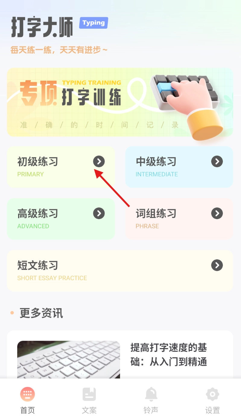 3、丰富文本资源:精选高频词语、成语、短文等多种类型的练习文本内容,满足不同练习需求。