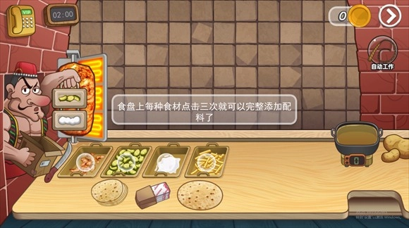 6、要是员工仅拿出盒子,让玩家自行添加食材,此时便可使用右上角的道具。一旦这样,员工就会很卖力地补充三个盘子的配料。而且,即便是烤焦的沙威玛也能拿给他,他不仅会露出一副难吃的表情,肚子还会变大。
