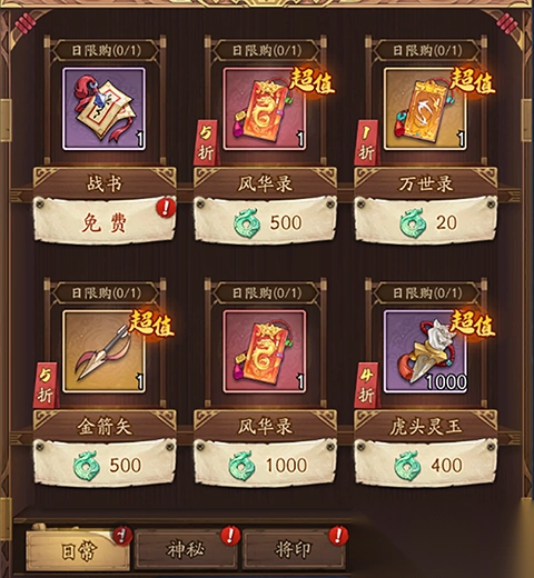 ②神秘商店可以刷新出风华录但是玉璧不多的玩家不建议刷新很多次。