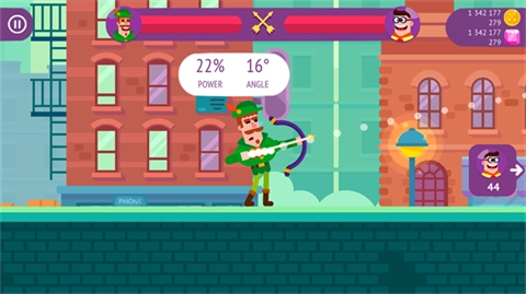 3、游戏采用回合制,玩家操控主角通过射击或抛射的方式投掷武器,凭借高超技能就能获得源源不断的奖赏!