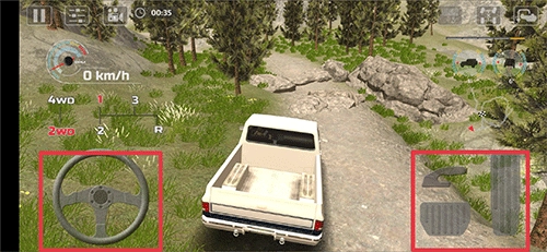 2、然后进入游戏,左下角的方向盘控制车辆的方向,右边控制车辆的前进和刹车