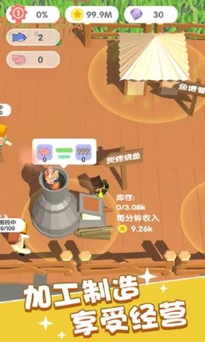 把鱼苗养大后进行收集,在木桩位置将其加工成鱼肉和鱼骨,鱼肉用于盈利,鱼骨则用于战斗资源储备。