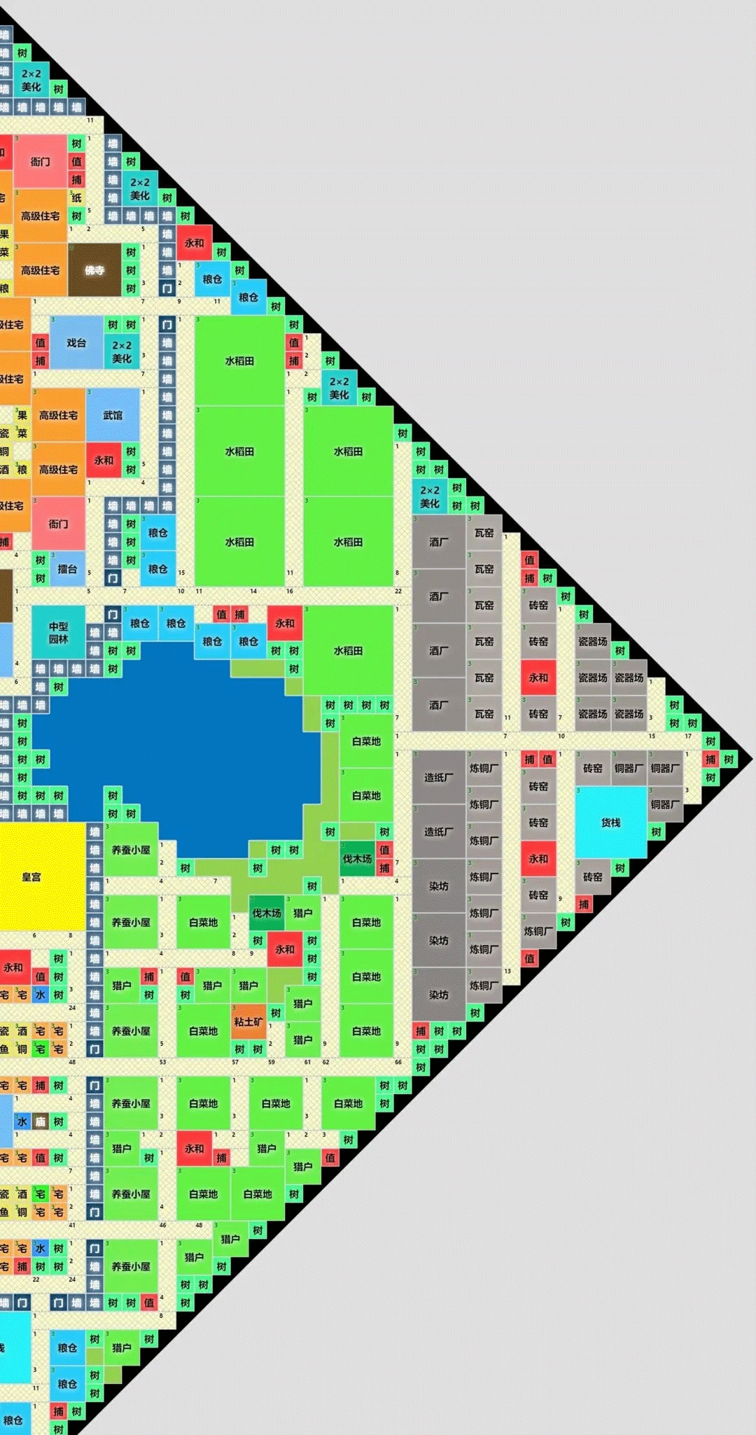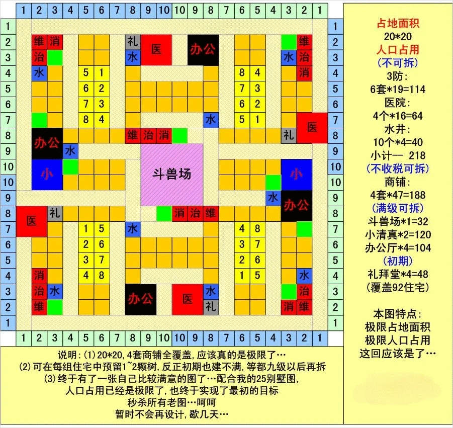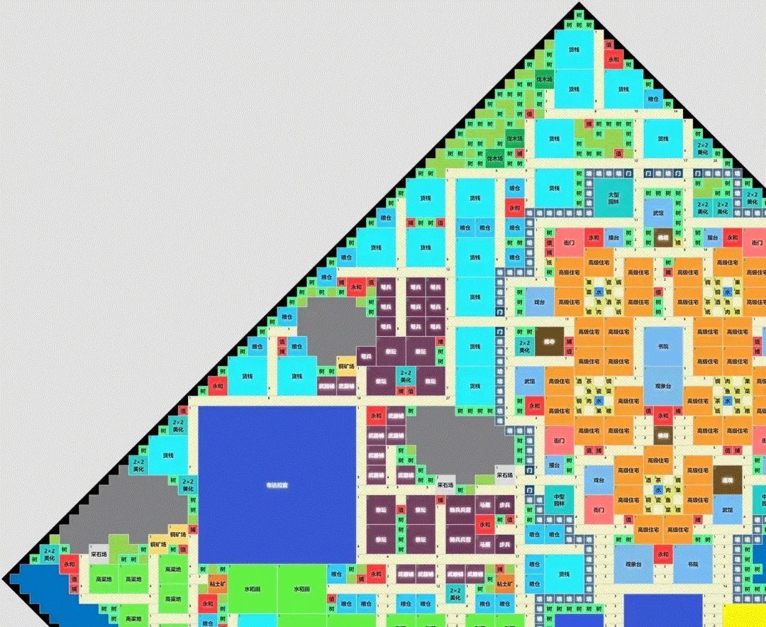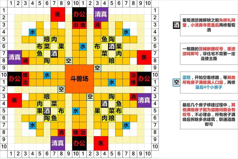 布局图会有零零散散的小问题,请自行摸索解决。例如遇到四防或宗教建筑没有全覆盖的时候,请自行加盖建筑,或调整原有建筑位置。