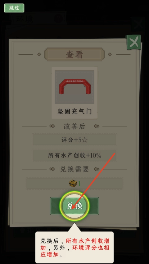8、兑换充气门,让你的水产创收增加;