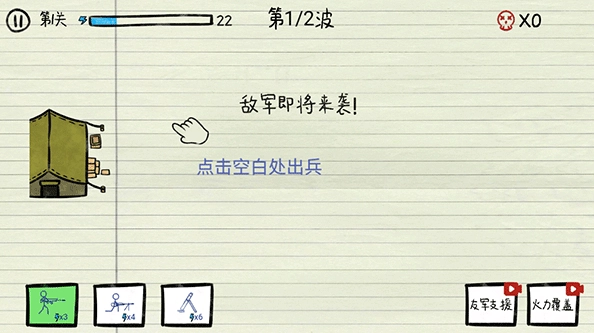 在此处,我们需要做的是,凭借合理地派遣士兵,将来袭的敌人一网打尽,只要最终把所有敌军都打败,就能顺利通过关卡。