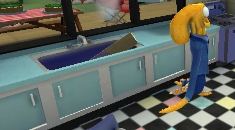 3、烟熏老爸:把火炉里的木头放到水槽里就行。