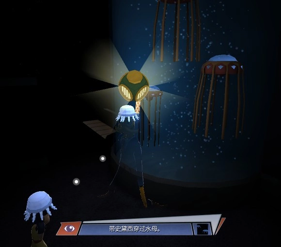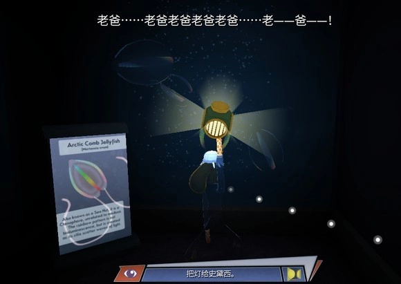 6、深海谜团:用灯照亮全部水母,我印象里大概有5只,最后的两只位于出口处生物学家的左侧。