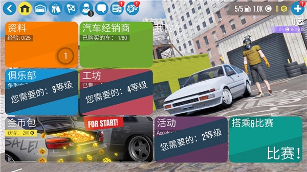 1您能够对爱车进行升级,挑选契合各个阶段的组件,为每个级别打造优势。