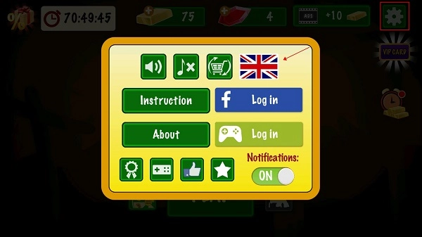 1. 进入游戏之后,点击右上角标有“齿轮”的位置,打开设置界面,从中找到国旗。