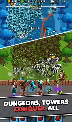 5、体验令人上瘾的闲置游戏机制与战术塔防游戏的结合。
