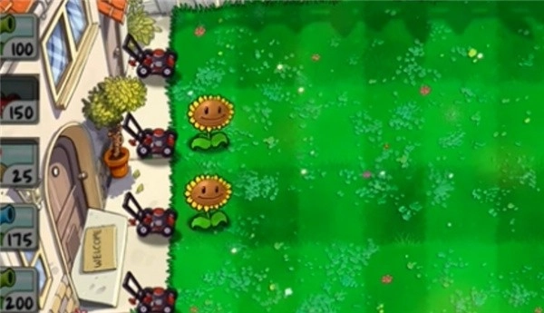 2、直接在左侧快速种植两个向日葵,可以持续的获得阳光。