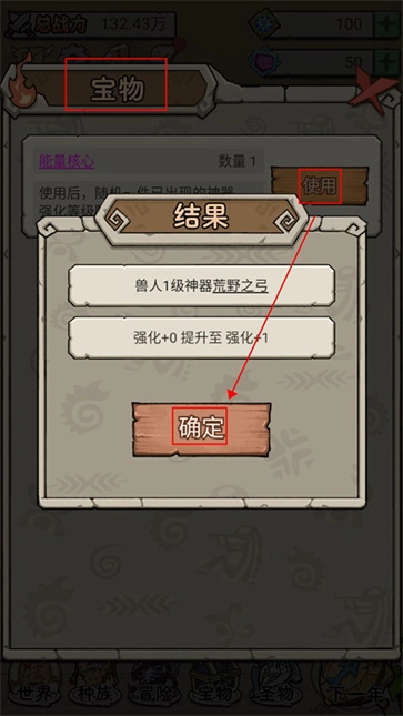 7、玩家获取宝物后,能够加以使用,可随机为某一个种族提供神器装备。