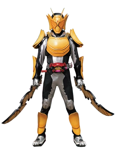 变身方式:使用“变身腰带Gavv”,配合“脆脆薯片骑士饱藏”变身的派生形态。